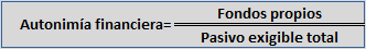 Mide la dependencia de la empresa con respecto a los recursos ajenos. Cuanto mayor sea el valor de esta ratio, mayor será la autonomía de la empresa (menor dependencia de los recursos ajenos).