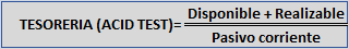 Este ratio estudia la liquidez de la empresa a corto plazo. También se la llama ratio de distancia a la suspensión de pagos.