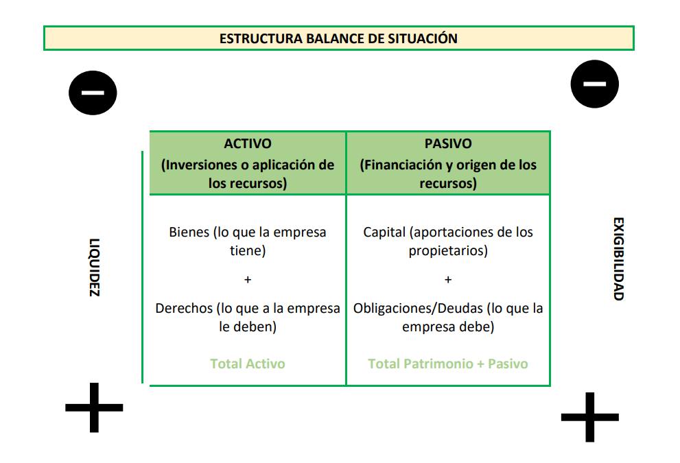 - Balance de Situación: Muestra el conjunto de Bienes, Derechos y Obligaciones de la empresa. ACTIVO, PASIVO Y PATRIMONIO NETO