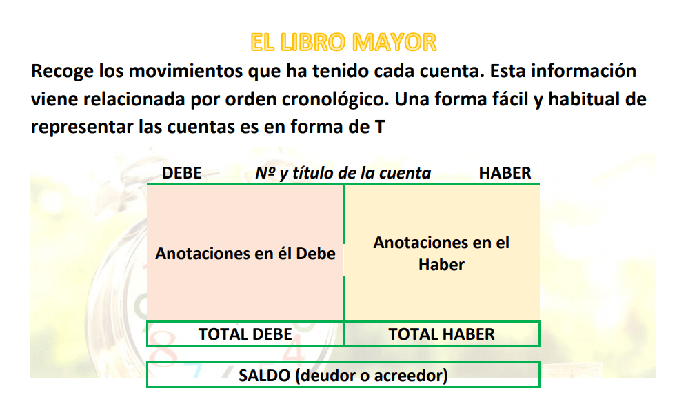 - Libro Mayor: El libro mayor es el resumen (saldos contables) de cada cuentas contable introducida en el libro diario.