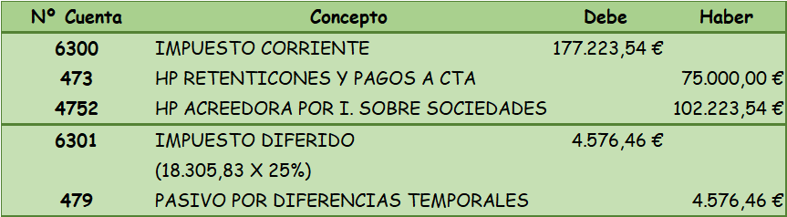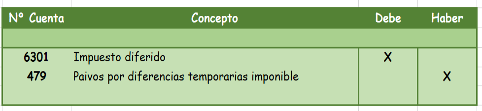 El importe de los pasivos por diferencias imponibles originadas en el ejercicio se recogerá en la cuenta