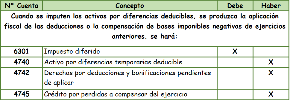 El crédito impositivo derivado de las deducciones pendientes de aplicación se recogerá en la cuenta