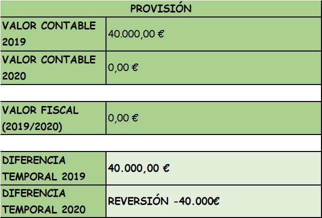 • Ha dotado una provisión para garantías posventa por importe de 40.000 €, siendo el importe fiscalmente deducible en el ejercicio en el que se realice la reparación.
