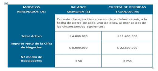 Las cuentas abreviadas no incluye el Estado de flujos de efectivo (novedades del flamante PGC); el Estado de cambios en el patrimonio neto se presenta abreviado. Además, se reducen las categorías de activos financieros y se suprimen los activos no corrientes mantenidos para la venta.
