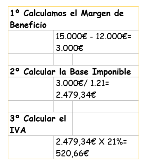La base imponible es el margen de beneficio obtenido en cada operación, sin incluir el IVA: