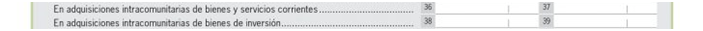 Solo si tienes un CIF intracomunitario, puedes reflejar en la casilla 36 la base imponible de las compras que hayas hecho en la Unión Europea referentes a bienes corrientes y de inversión.