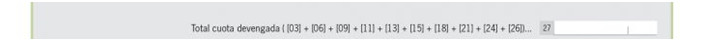 Aparece el total de la cuota devengada, que es la suma de todos los resultados de la columna de cuotas. El cálculo es automático si se rellena de forma telemática.