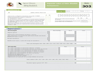 El impreso para la autoliquidación del IVA ante la Agencia Tributaria es el modelo 303. En el mismo, como veréis a continuación, se rinden cuentas a la Agencia Tributaria (AEAT): El “IVA soportado” es el que hemos pagado al realizar compras o servicios para desarrollar la actividad económica, y el “IVA repercutido” es el que añadimos a nuestras facturas de ventas o servicios.